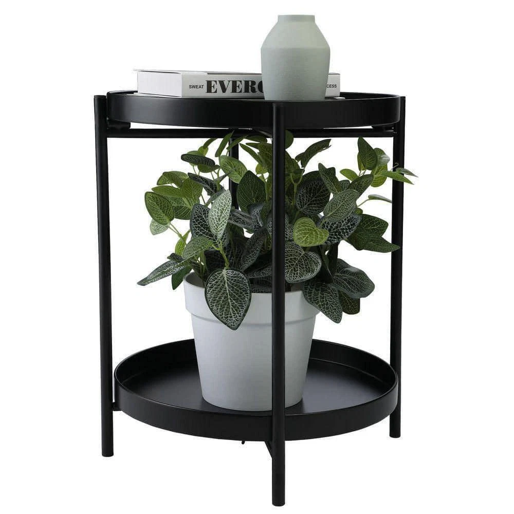 19 5 In Black Metal Plant Stand Indoor Outdoor 2 Tier Ebay